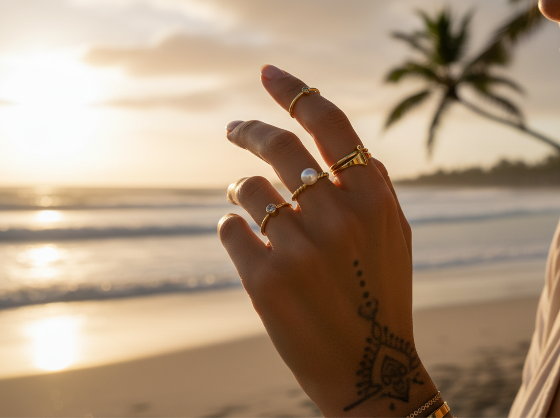 Oceana Gold - Verstellbarer Ring mit Süßwasserperle – 18 Karat Vergoldung Dieser elegante Ring ist ein zeitloses Stat...
